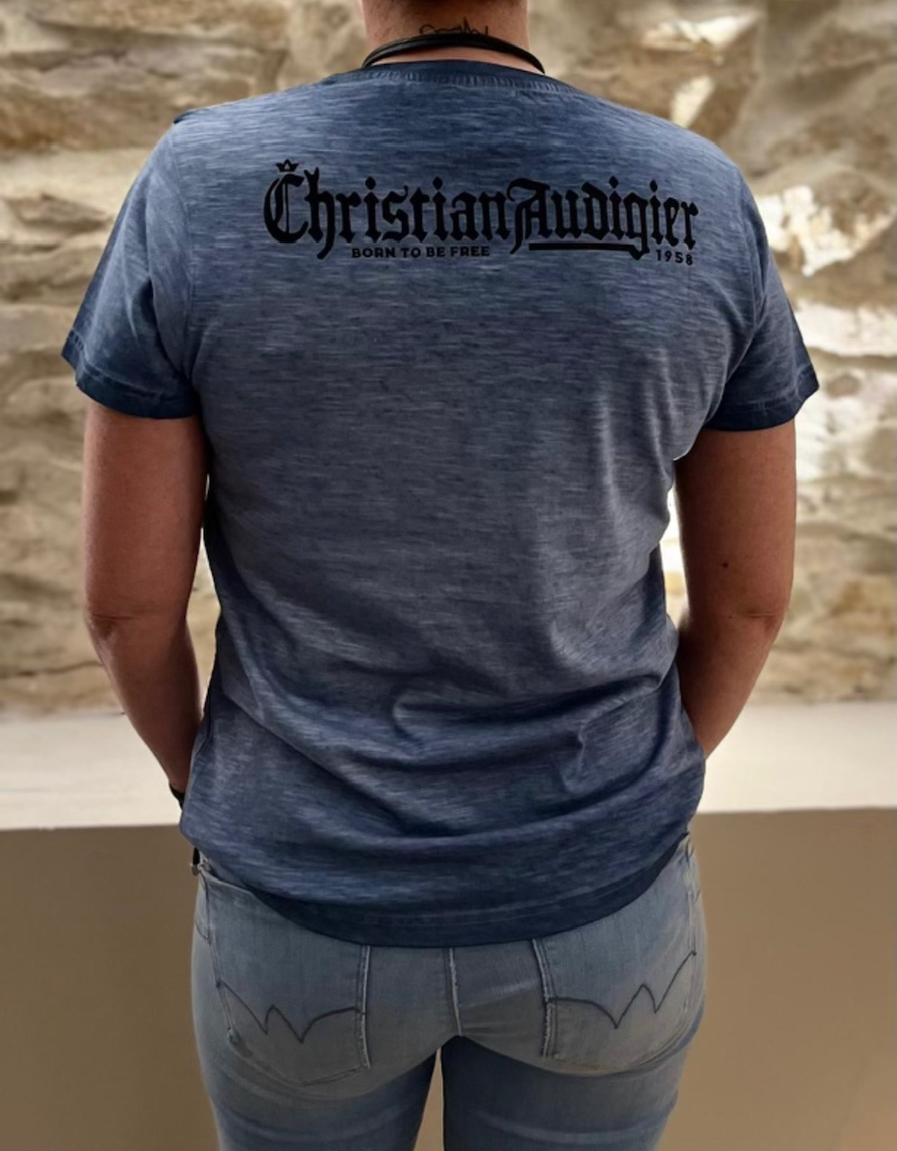 Soyez le premier à laisser votre avis sur “T-shirt femme Christian Audigier coton slub col V bleu”