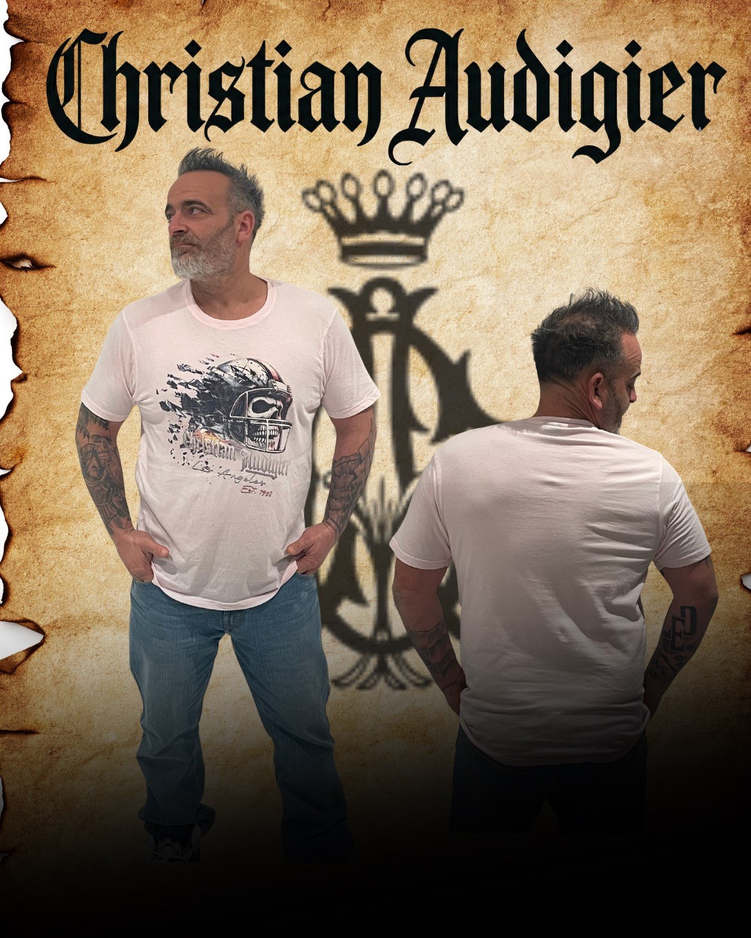 L’arrière du T-shirt complète l’ensemble avec le logo Christian Audigier